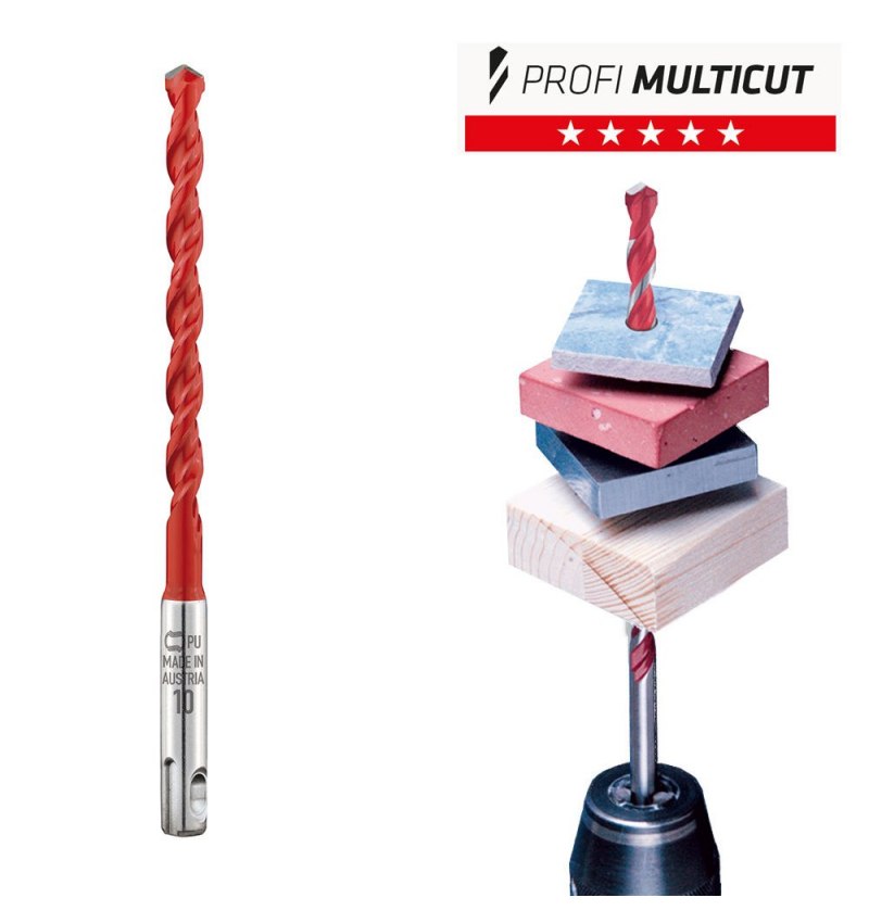 - Perfil cuádruple escalonado patentado, Rápida eliminación de los detritos durante el taladrado en mampostería y hormigón.