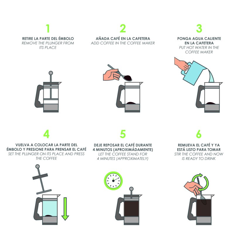 - Tambien conocido como cafetera francesa, prensa francesa o cafetera de filtro.
