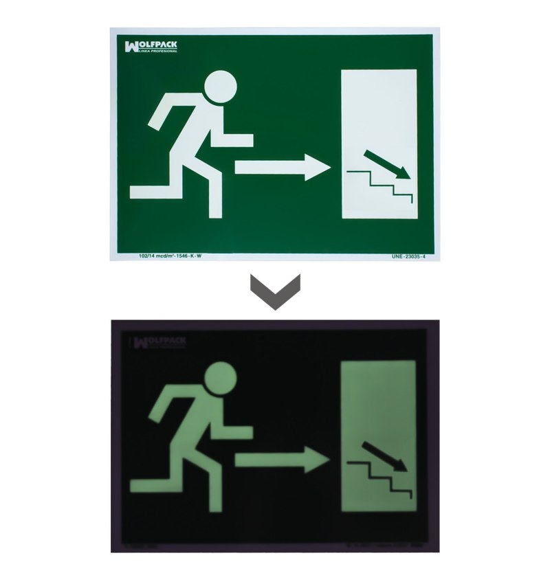 Cartel Fluorescente Salida Escalera Derecha Arriba 21x30 cm.