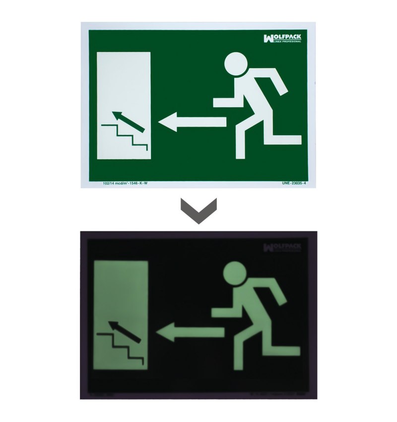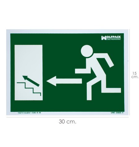 Cartel Fluorescente Salida Escalera Izquierda Arriba 21x30 cm.