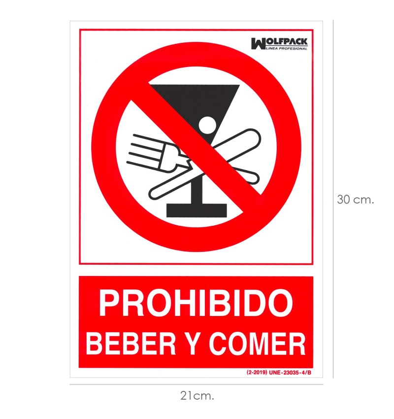 Cartel Prohibido Beber y Comer 30x21cm.