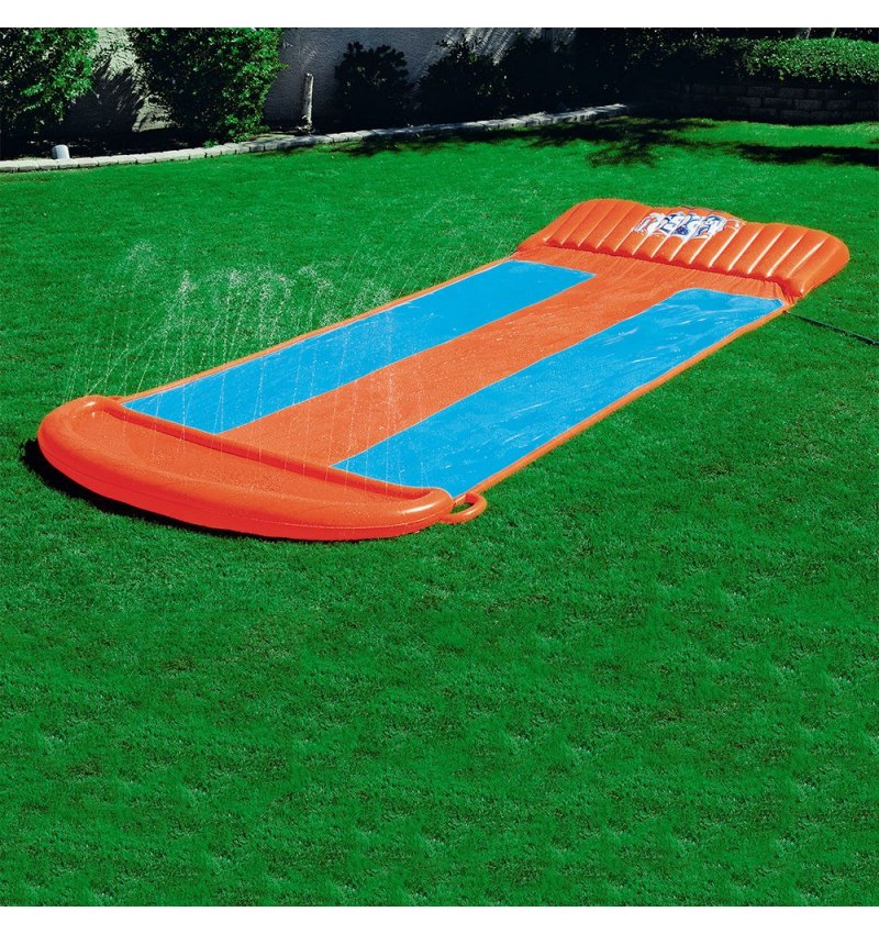 - Carril de deslizamiento triple te permite deslizarse junto a su amigo para un final de carrera empapado.