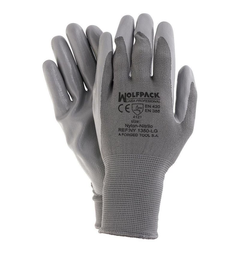 - Guante de Nylon revistado con nitrilo en palma y dedos".