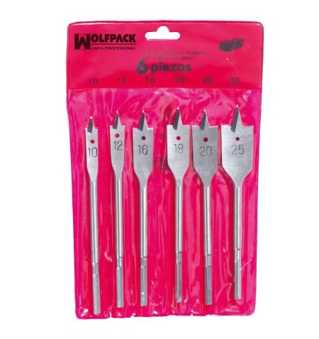 Juego Brocas Planas Madera 3 Puntas Wolfpack 6 Piezas