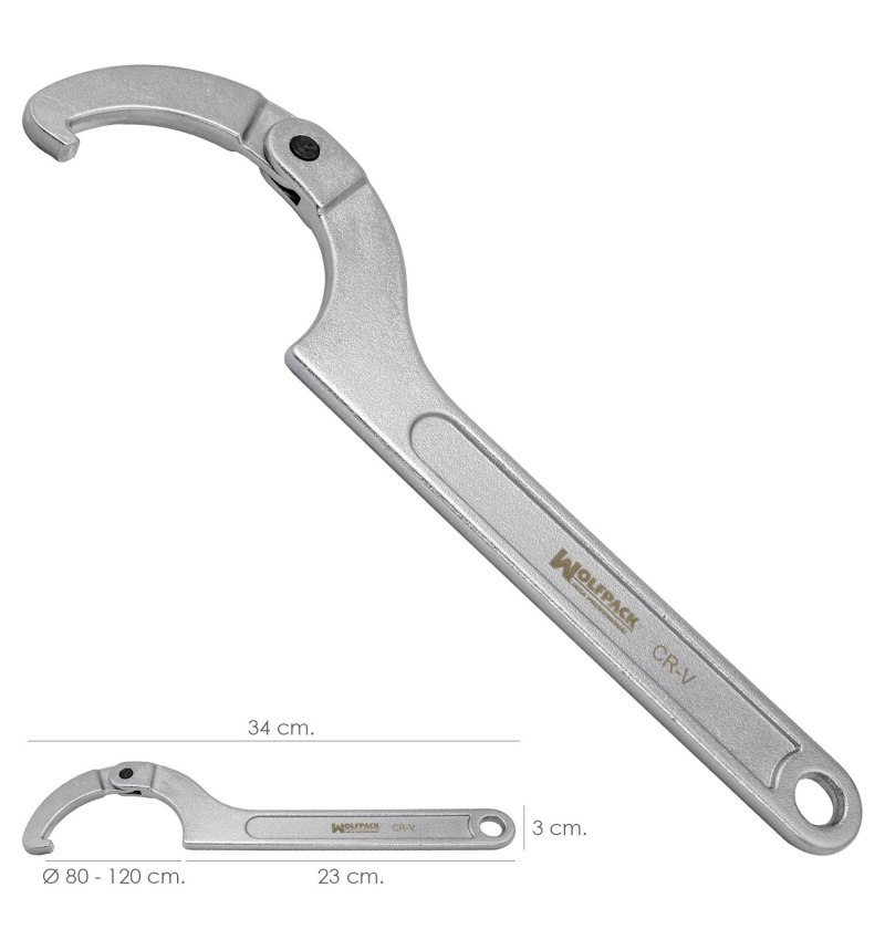 - Articulo conocido como llave tipo c, llave de pernos, llave inglesa tipo c, llave de gancho articulo para tuercas ranuradas, llave uña articulada de pivote.