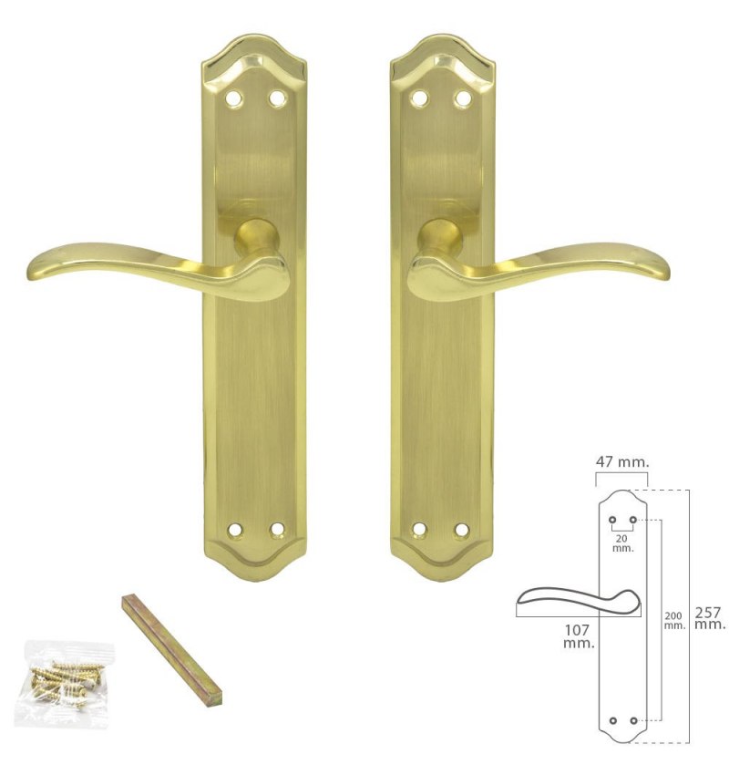 Juego Manivelas Para Puertas, Laton Pulido Satinado "Oryx Isabel"