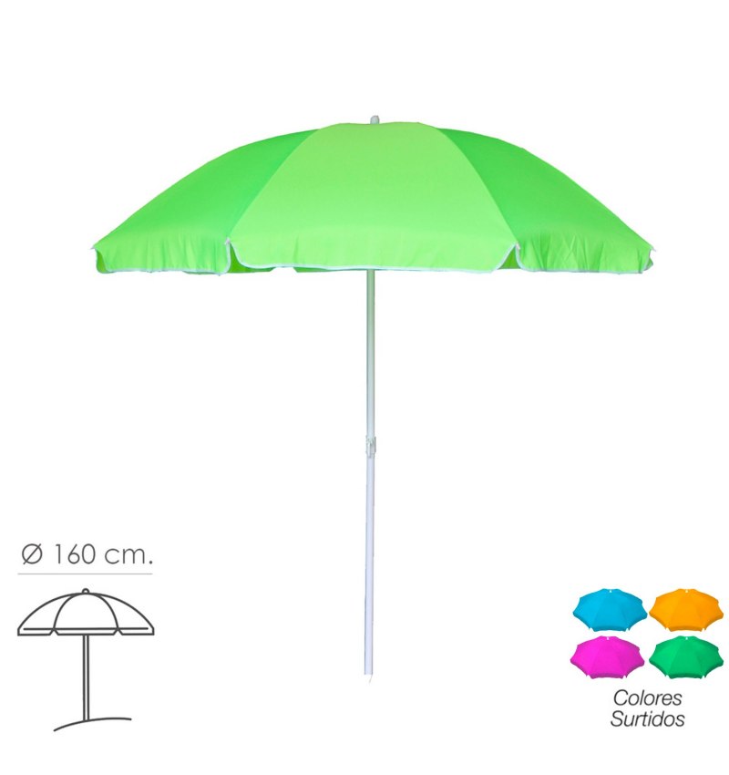 Sombrilla Playa Poliester 180 cm. Colores Surtidos