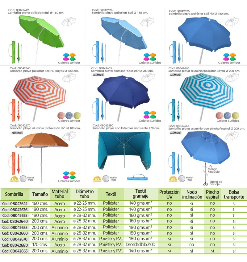 Sombrilla Playa Proteccion UV Aluminio 200 cm.
