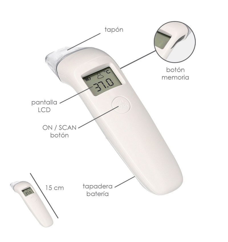 - Ideal para tomar la temperatura de forma rádipa a niños y adultos, comercios, terrazas, restaurantes, accesos, filas de persona o colas.