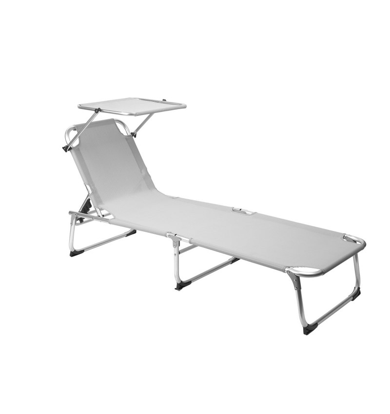 Tumbona Playa Aluminio Cama Con Parasol Color Gris