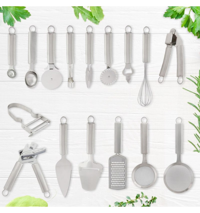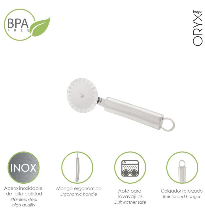 - Descubra toda la gama de utensilios de acero inoxidable:Cortador de queso, cortador de pizza, abrelatas, rallador, abre botellas, colador, rodillo corta pasta, todos ellos realizado en acero inoxidable.