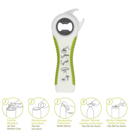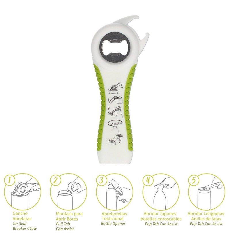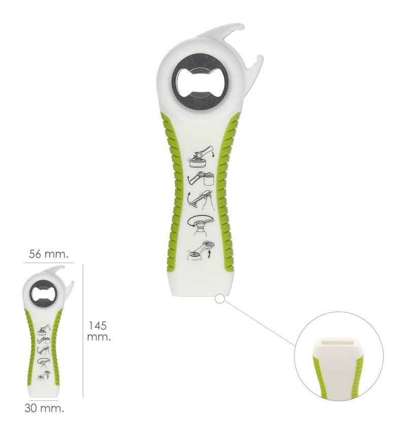 - Muy practico y facil de usar, con muy poca fuerza podrá abrir todos los recipientes.